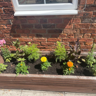 Recently, The Cedars got an outdoor makeover, with a host of colourful flowers being planted to brighten up the courtyard at the home. These flowers were gifted by Woodend Nurseries garden centre in Great Preston, from which we also had assistance from Johnny, who offered welcome advice on which were the right plants to choose for the garden.