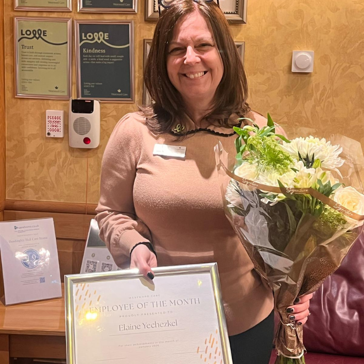 Headingley Hall Senior Administrator Elaine Yechezkel was voted January’s standout employee for the location, with one colleague who nominated her writing: “Elaine has a demanding role, but always ensures that she supports the administration team.” It’s a well-deserved acknowledgement in what is the 16th year at Westward Care for Elaine, who has been at Headingley Hall since starting at the home in 2010.
